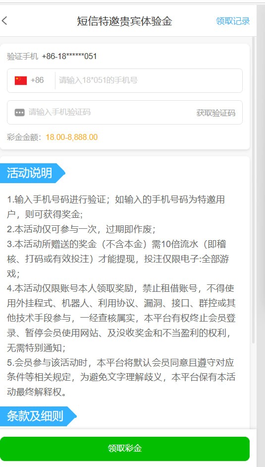 优惠大厅 输入手机号验证是特邀领取18彩金  网址是 https://www.613897.com/?dl=63n81t