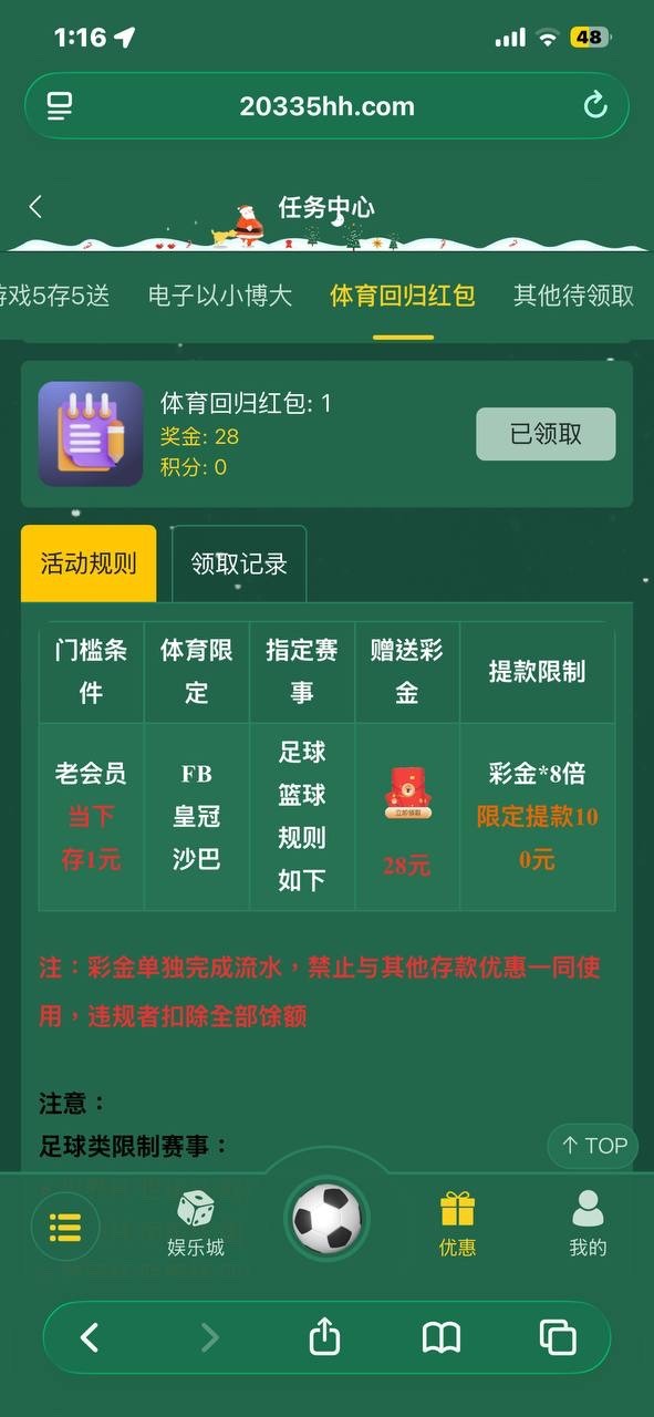 【CG体育】回归红包28元