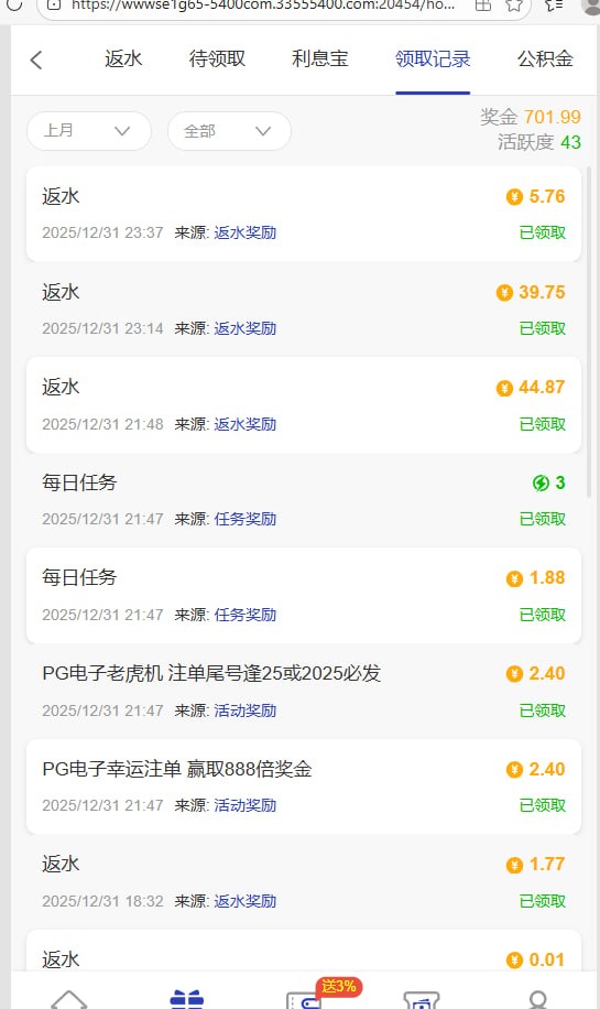 小白兔  我充值了3000不到 福利反水等彩金就领取1000+了 真实
