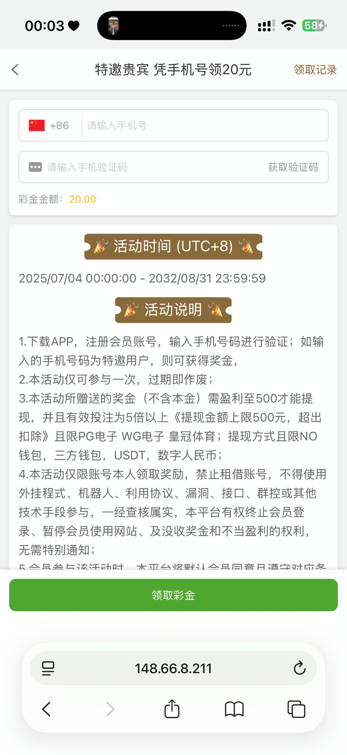 注册优惠新人最下面那个自助领取