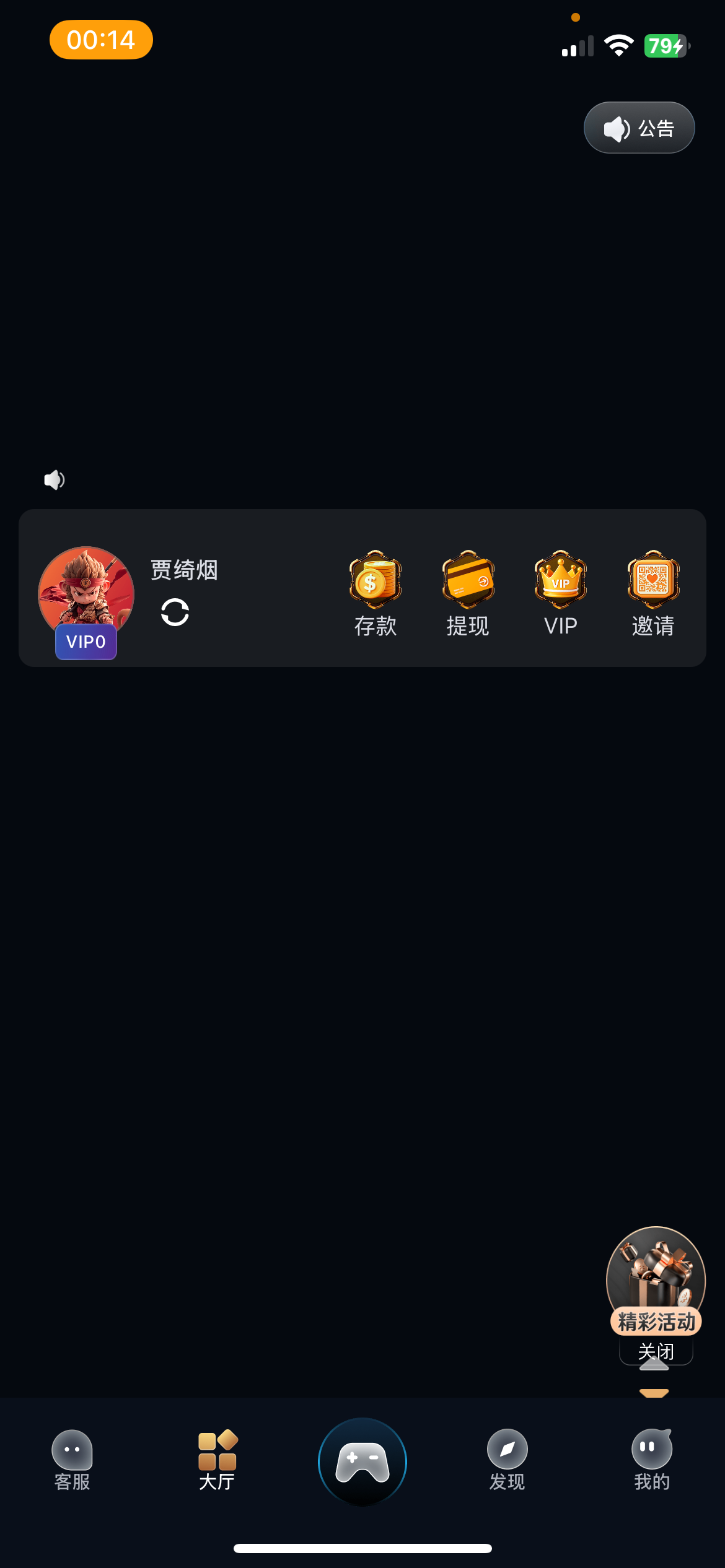 首存后房间领取开业金额20-60红包