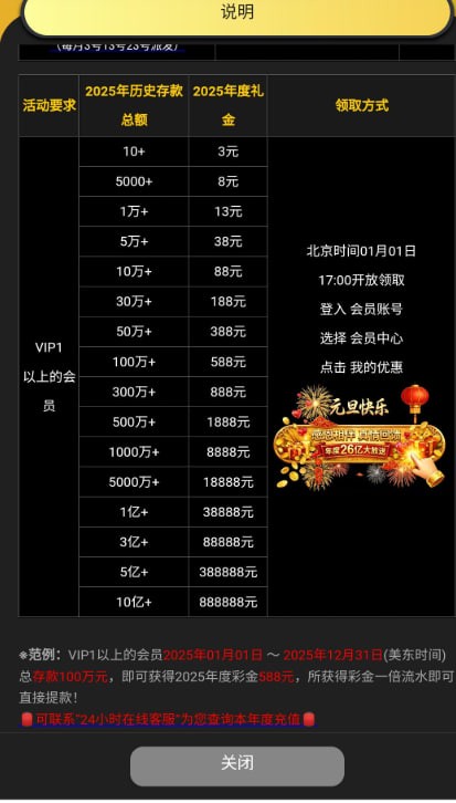 有充值的记得元旦下午5点上线领取,两个回馈,一个年度充值回馈,一个历史注册福袋
