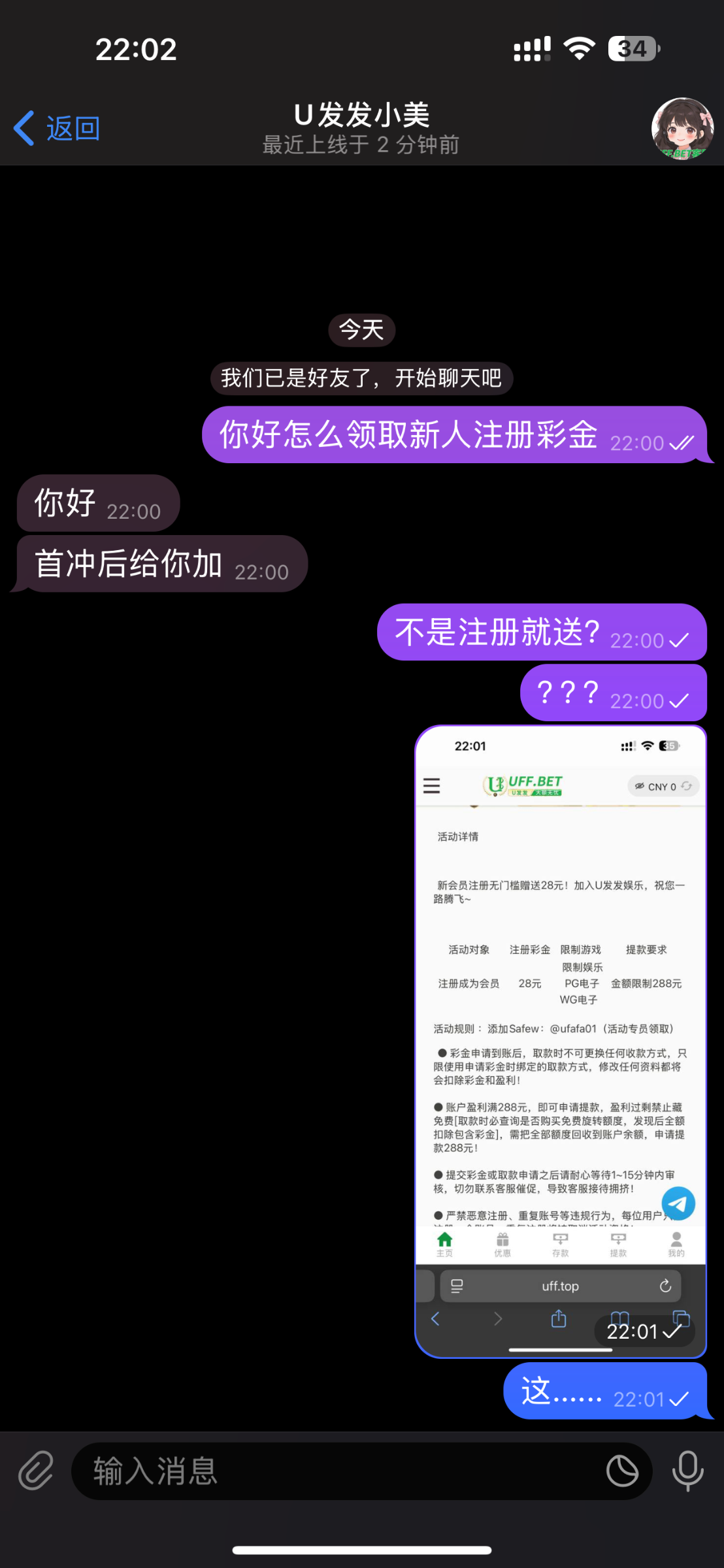 【U发发】注册找客服领取28彩金