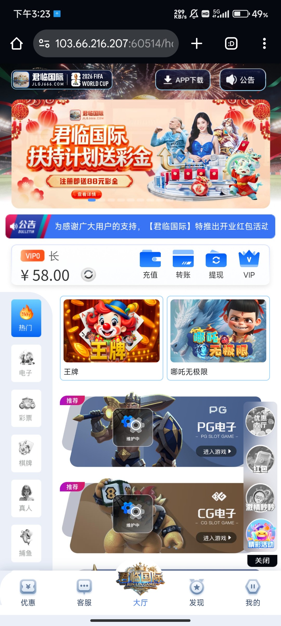 NG旗下君临国际送500份58